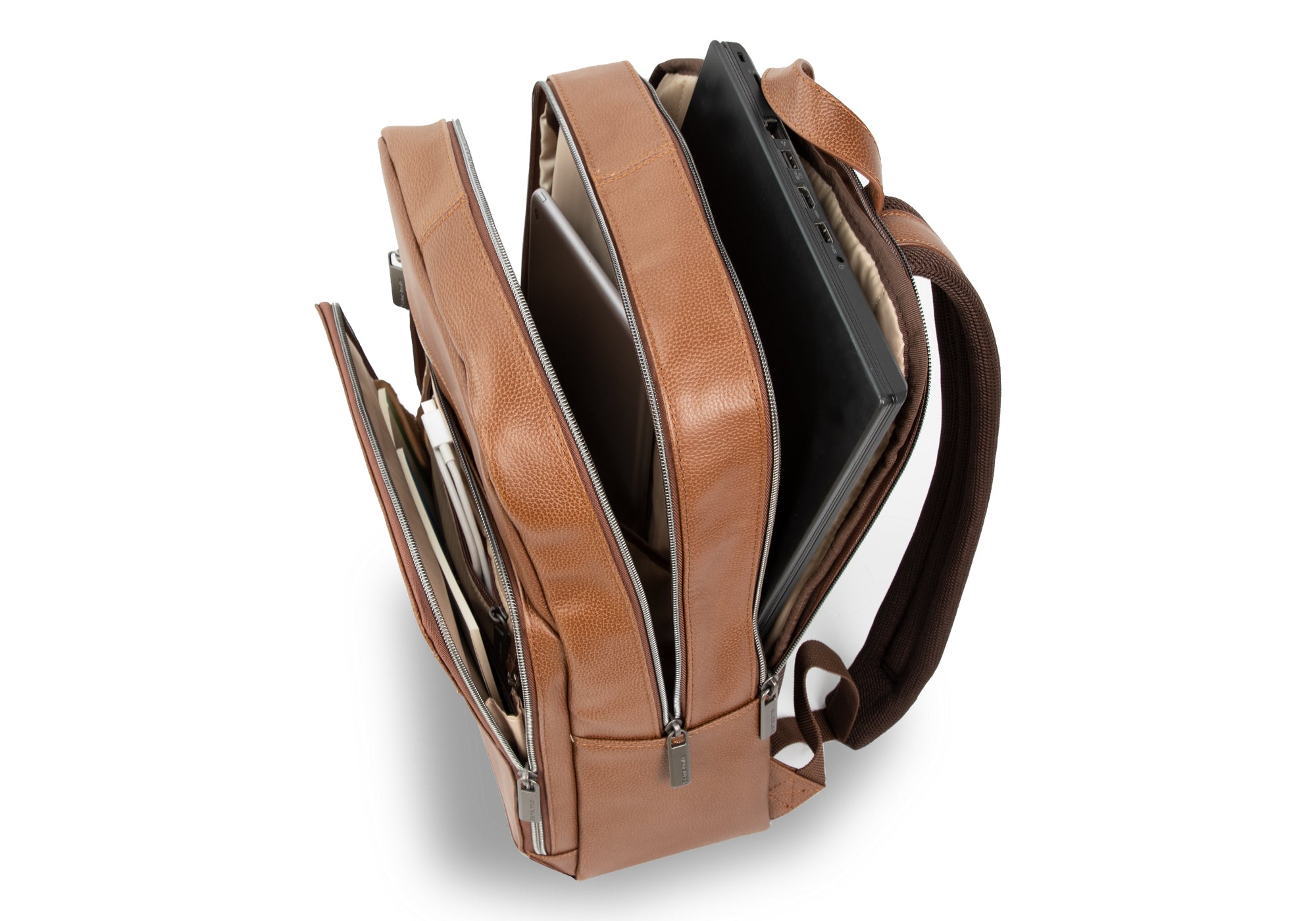 - The main compartment features an additional pleated compartment for a second laptop or documents.